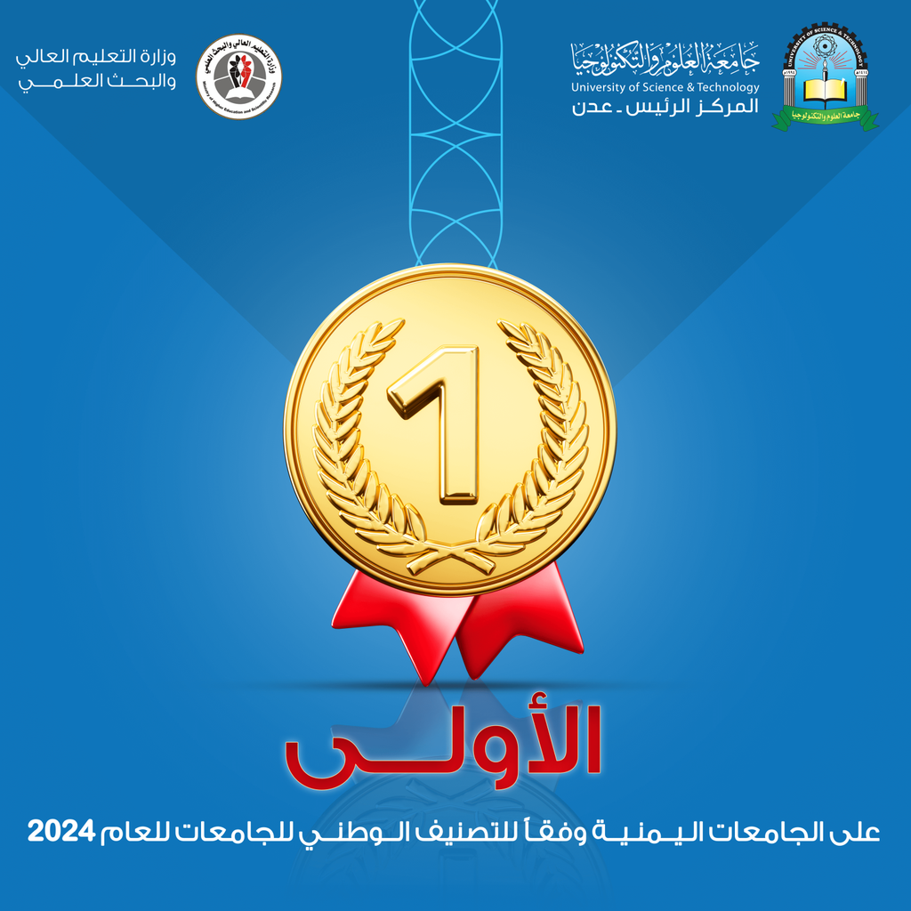 The University of Science and Technology – Aden has won first place among Yemeni universities in the first national ranking of Yemeni universities in 2024.