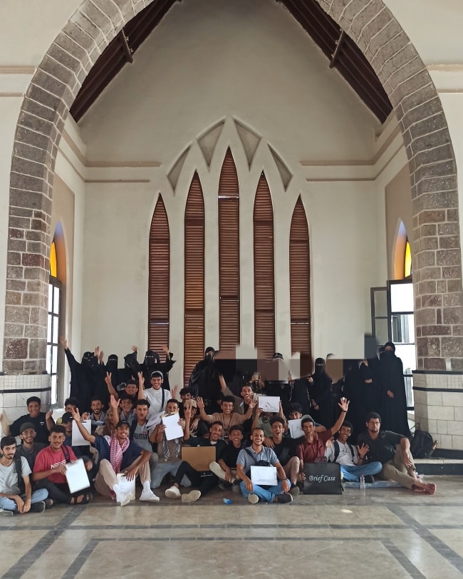 Field visit of architecture students to a historical landmark in Aden