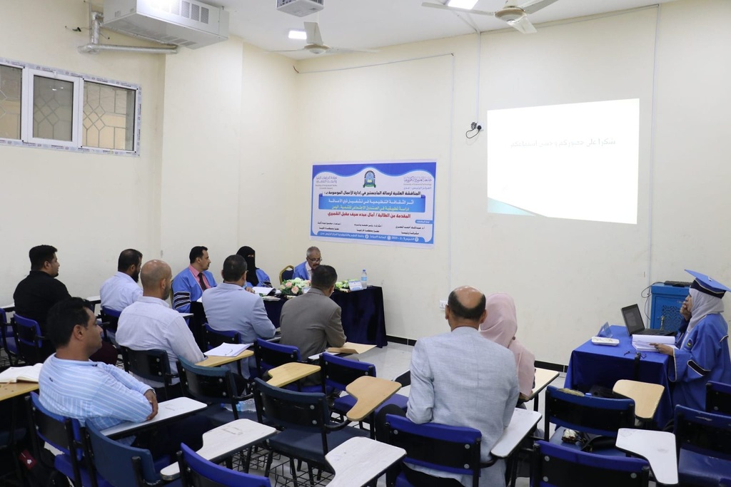 Public discussion of the master's thesis in business administration submitted by researcher Amal Abdu Saif Muqbel Al-Shamiri